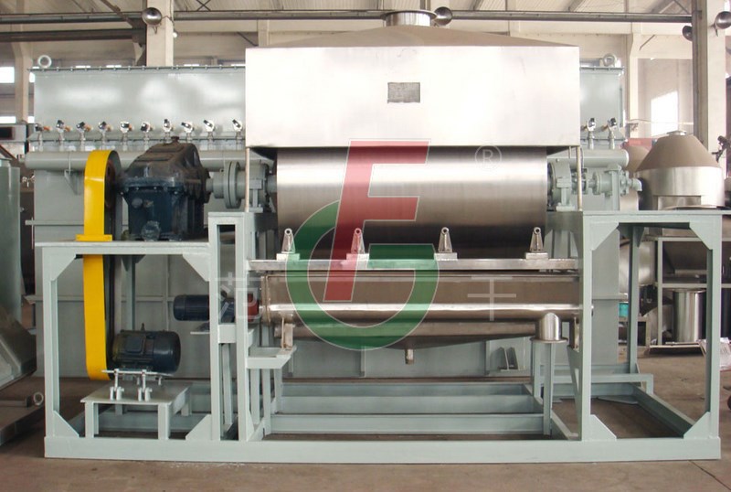 3.干燥時(shí)間短。物料的干燥周期一般只有10-15秒,適合于熱敏性物料。若將滾筒干燥機(jī)設(shè)置在真空器中,則可在減壓條件下運(yùn)行。