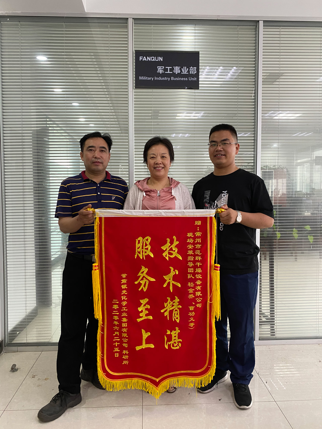 3月 26日,常州范群派出以嵇金喬為主的現(xiàn)場(chǎng)安裝指導(dǎo)團(tuán)隊(duì),該團(tuán)隊(duì)秉承“服務(wù)于用戶,創(chuàng)精品工程”的理念,他們克服了高原反應(yīng),水土不服的生理不適;克服了疫情導(dǎo)致工期延誤的影響;克服了項(xiàng)目指導(dǎo)安裝中所遇到的各種困難,不屈不撓、加班加點(diǎn)、通宵作業(yè)、確保項(xiàng)目按時(shí)完工并通過(guò)驗(yàn)收。常州范群這種全心全意服務(wù)于客戶的態(tài)度、吃苦耐勞打硬仗的精神,也獲得用戶的高度認(rèn)可。為此,甘肅銀光化學(xué)工業(yè)集團(tuán)有限公司科研所特別為常州范群現(xiàn)場(chǎng)指導(dǎo)安裝團(tuán)隊(duì)頒發(fā)了“技術(shù)精湛 服務(wù)至上”的錦旗。他們用自己的不懈努力為常州范群、為自己贏得了榮譽(yù)。