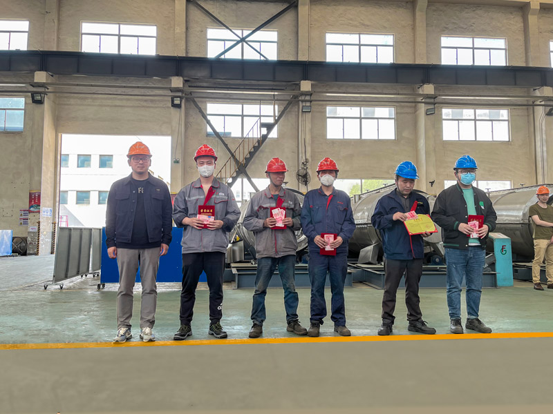 公司總經(jīng)理范琪、工會(huì)主席張濤對(duì)獲得“五一車間勞動(dòng)模范”榮譽(yù)稱號(hào)的勞模先進(jìn)們進(jìn)行頒獎(jiǎng)表彰。