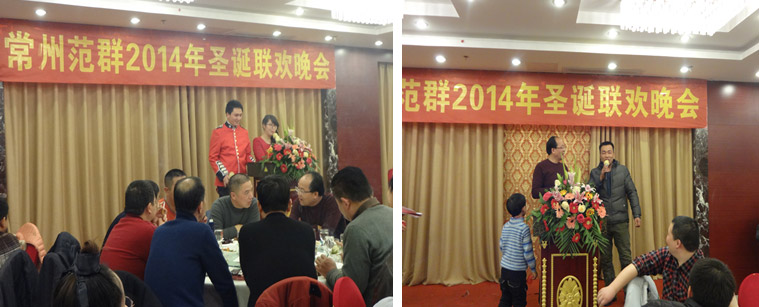 12月25日晚,在星月大酒店二樓大廳舉行常州范群2014年圣誕晚宴,公司全體員工和特邀嘉賓齊聚一堂,歡度圣誕,迎接2015年元旦的到來。晚上5點半,晚宴正式開始,首先董事長范總發(fā)言,介紹了今年公司的整體情況和目前的銷售額完成情況,今年我們范群總銷售額超過了2億元,這是全體員工共同努力的結(jié)果,也為明年的目標打下堅實的基礎(chǔ)。 同時也有需要改進的地方。接下來晚會表演開始,節(jié)目精彩紛呈,有小品、歌曲、二胡演奏等等,其中還穿插了抽獎環(huán)節(jié),讓晚會高潮迭起,歡笑聲不斷。本次晚會由公司工會組織,各部門積極參與,所有節(jié)目都是由各部門員工利用業(yè)余時間自編、自導(dǎo)、自演。通過這臺晚會豐富了大家的業(yè)余生活,同時也表達了大家對美好生活的向往和對新年的期待,整場晚會充滿著歡聲笑語,取得了圓滿成功。