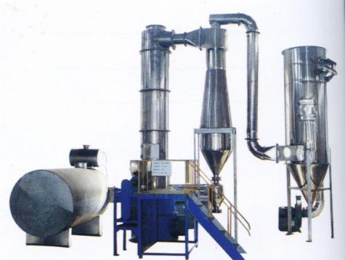 旋轉(zhuǎn)閃蒸干燥機(jī)是二十世紀(jì)八十年代在國(guó)外新推出的一種將干燥技術(shù)和流態(tài)化技術(shù)綜合為一體的新型干燥設(shè)備,它克服了噴霧干燥設(shè)備高,能源消耗大和流化床干燥不均勻的缺點(diǎn),集兩者之所長(zhǎng)。成為具有高效、節(jié)能、快速等特點(diǎn)的理想干燥設(shè)備。它特別適合于高黏度膏狀物、濾餅等物料的直接干燥,并可一次獲得顆粒微細(xì)的粉體,彌補(bǔ)了耙式干燥效率低、產(chǎn)量小的不足,改變了噴霧干燥先稀釋再進(jìn)行噴霧處理的復(fù)雜過(guò)程。由于熱風(fēng)與物料接觸時(shí)間短,可以對(duì)觸變性、熱敏性物料及生物菌體進(jìn)行干燥,并具有防止焦化變色的作用。